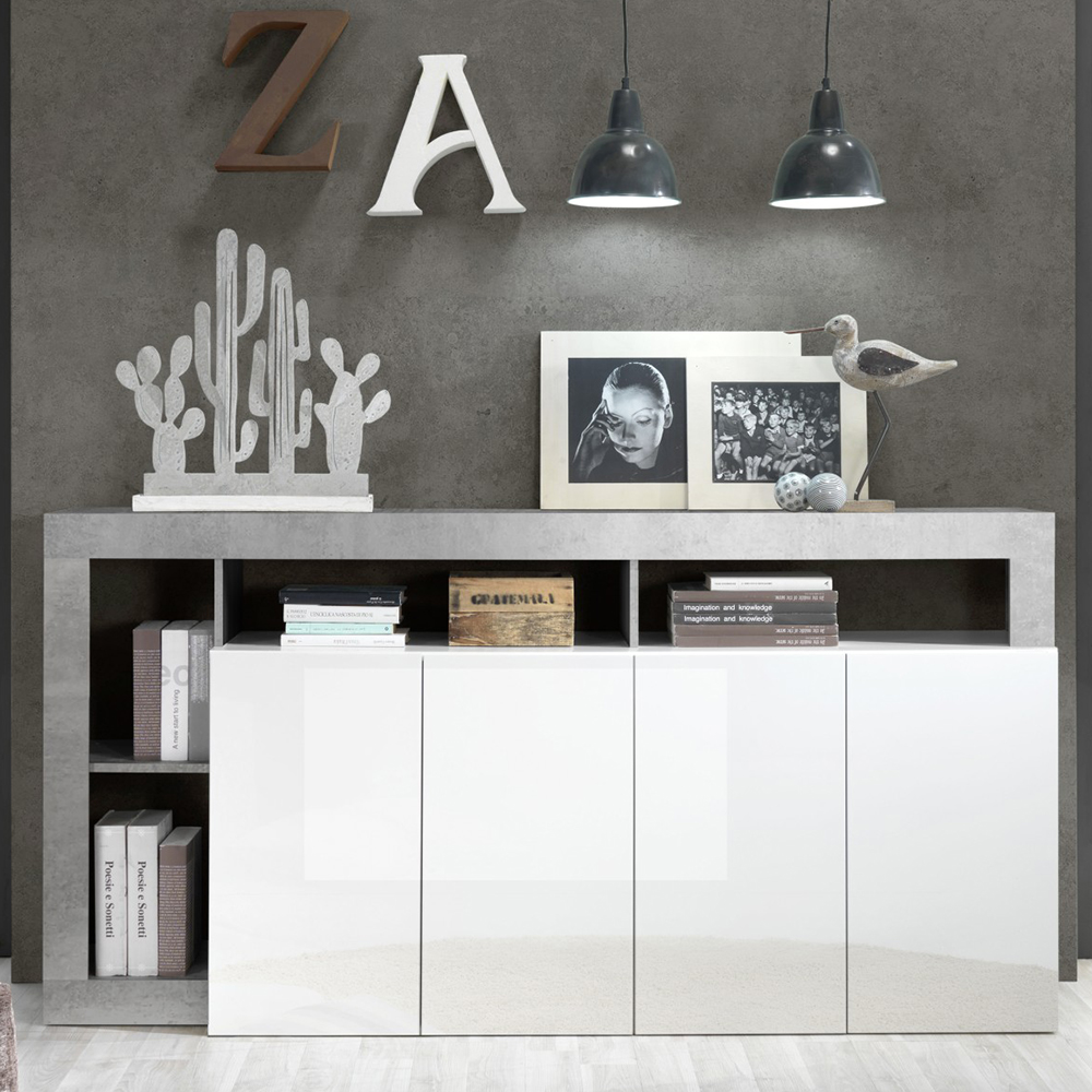 Hanmer White High Gloss Sideboard With 4 Doors In Cement