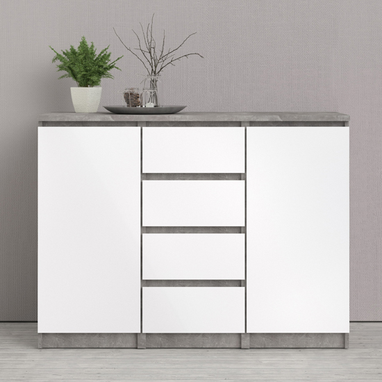 Nakou High Gloss Sideboard With 2 Doors 4 Drawers In Concrete And White