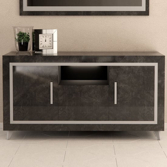Sarver High Gloss Sideboard With 3 Doors In Black And LED