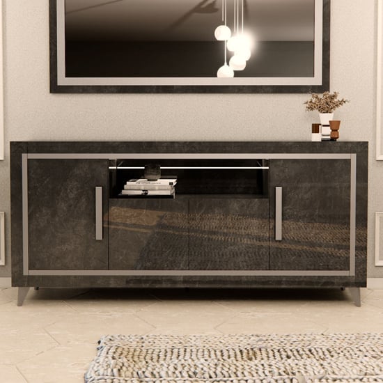 Sarver High Gloss Sideboard With 4 Doors In Black And LED