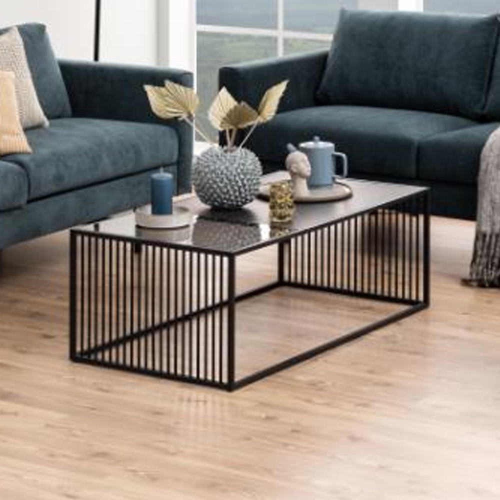 Add a bold and stylish statement to your living space with the Furniture in Fashion Surf Wooden and Glass Coffee Table in Black Izmir. Designed with modern living in mind, this sophisticated coffee table features a rich black wooden base and a sleek glass top, creating a harmonious balance between texture and transparency. Its minimalist design enhances both functionality and aesthetic appeal, making it an ideal centrepiece for contemporary interiors. Crafted for everyday use, the Surf coffee table offers a spacious surface perfect for drinks, decor, or your favourite magazines. The sturdy wooden frame in a smooth Black Izmir finish brings warmth and depth to the space, while the tempered glass top adds a light, airy feel without compromising durability. Its a smart addition for modern living rooms seeking both form and function. The Furniture in Fashion Surf Wooden and Glass Coffee Table in Black Izmir effortlessly blends modern materials with timeless design. Whether you’re entertaining guests or enjoying a quiet evening in, this statement piece adds style, practicality, and a polished finish to any living area. FEATURES : Material : Wooden, Glass Finish : Black Izmir Ready to make a statement Then prepare for this trendy coffee table To achieve that cool vibe, the table top is divided with one side of smoked glass and one side of black marble look The sides complete the look with rounded, vertical metal slats, which also give the design a modern lightness Stability is ensured by a sturdy metal frame Divided table top with black marble look and tempered, smoked glass Sides with rounded vertical metal slats Base made from rough powder coated metal Tempered Glass Top Durable and safe, offering a sleek surface thats easy to clean Black Izmir Wooden Base Adds bold character and stability with a luxurious touch Spacious Rectangular Surface Perfect for serving, decorating, or everyday living Strong and Sturdy Construction Designed for